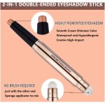 - There are 12 shades of eyeshadow to choose from:Highly pigmented eyeshadow sticks, from warm to cool color, elegant pink to sexy brown eyeshadow, advanced gray to bright gold, can be used to give smoky, luminous and metallic makeup. Shimmer and matte eyeshadow sticks would create suitable makeup for your different dressing styles and occasions. A professional perfect makeup effect, office look, natural look