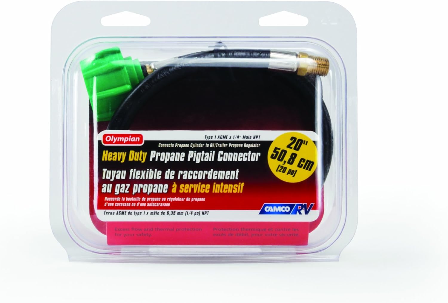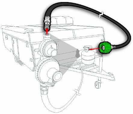 - Connect your camper’s 1/4″ NPT inlet regulator to a 20lb or 30lb LP tank