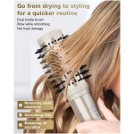 - IONIZED CARE AND KNOT-FREE BRUSH HEAD DESIGN – Hair dryer curler is equipped with temperature protection and ceramic coating technology to ensure constant and safe temperature and even heat dissipation, releasing thousands of negative ionic streams during the blow drying process, which can help to smooth, enhance shine and toughness. Brush head Designed with nylon pins and tufted bristles, it makes hair smooth and knot-free.